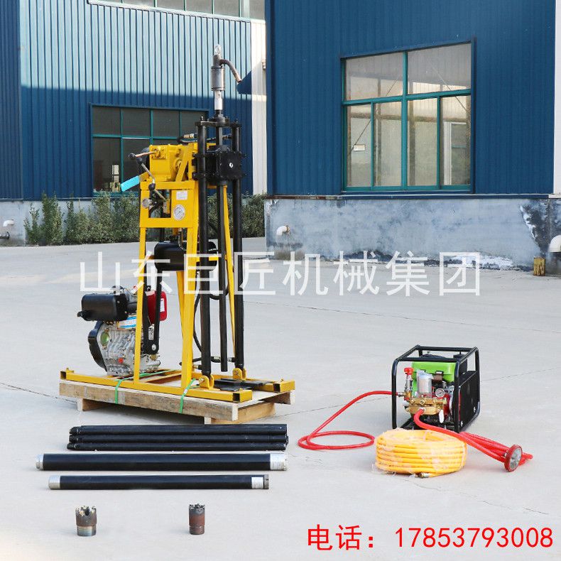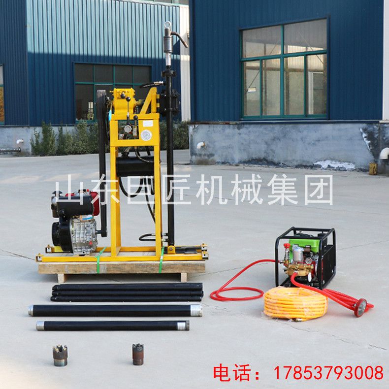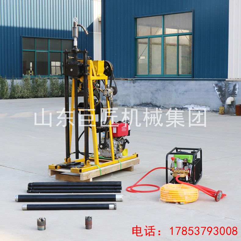 2.该型号轻便钻机相比同类产品,配备双油缸液压给进系统,钻进速度快,工作*。