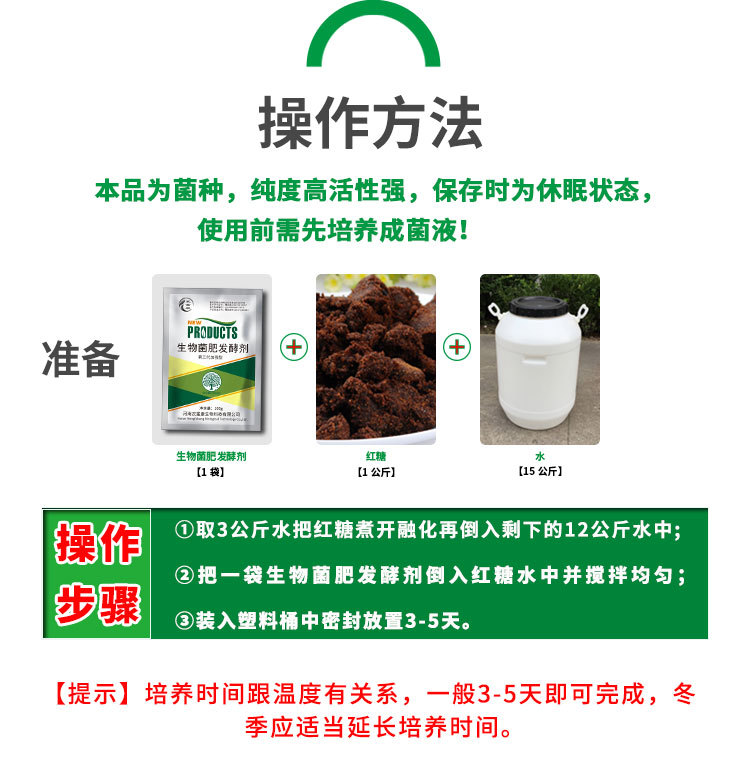 5、堆制3天升温、5天无臭、9天松散、12天变香、15天成肥。堆制第3天温度可达60℃-80℃,杀死大肠杆菌、虫卵等病虫害;第5天消除了羊粪的臭味;第9天堆肥变得松散干爽,长满白色菌丝;第十二天发出一种酒曲香味;第十五天菌肥便发酵成熟。整个发酵过程7-15天完成。成品有机肥为蓬松状、呈黑褐色,略带酒香味或泥土味,营养丰富,用于瓜果蔬菜、经济作物、苗木花卉营养土,价值增值数倍。看到这里还有人说:我之前没有用过发酵剂,不知道该怎么使用,担心自己发酵不好,这个问题也不用担心的哦,想要更多了解发酵细节的朋友可以直接联系我:134-6025-8890(薇信-同号)